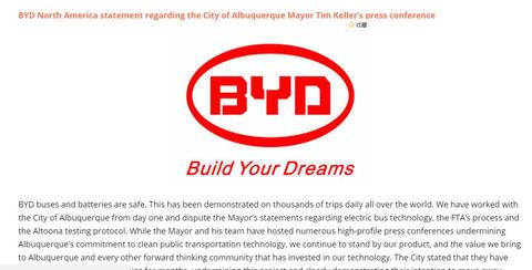 洛杉矶大都会交通管理局发言人表示:”我们与比亚迪合作多年,他们的电动巴士性能可靠,运营成本低。我们希望此案不会影响我们在清洁交通领域的合作。”
