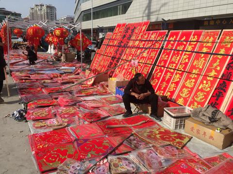 腊月十七清晨,招远市区的气温降至零下5度。天刚蒙蒙亮,14岁的小高和姐姐就推着三轮车来到街头,开始了一天的摆摊生活。车上装满了红彤彤的春联、福字和各式各样的年画。